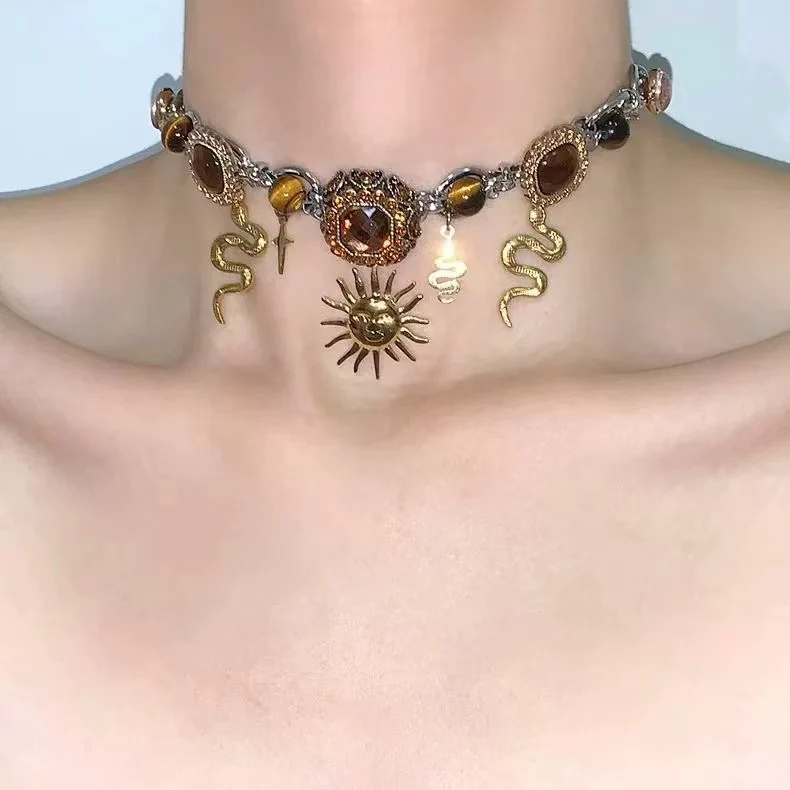 Double Layer Sunflower Cross Snake NeckLace
